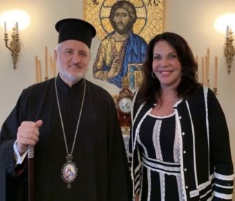 Ο Σεβασμιώτατος Αρχιεπίσκοπος Αμερικής κ. Ελπιδοφόρος και η Πρέσβης εκ Προσωπικοτήτων Κατερίνα Ναυπλιώτη-Παναγοπούλου, η οποία χορήγησε αποκλειστικά τη συναυλία που δόθηκε στη μνήμη του εις μνήμην του αείμνηστου συζύγου της Περικλή Σ. Παναγόπουλου, χειροκροτούν από το θεωρείο του Carnegie Hall.