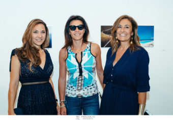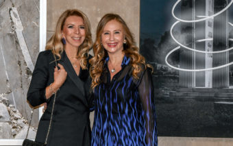 Η επιμελήτρια της έκθεσης Κλέα Σουγιουλτζόγλου και η Ζέττα Ανσακλή με φόντο τις δυο εμβληματικές Cloudscape φωτογραφίες της κ. Αντσακλή στο Ίδρυμα Ευγενίδου