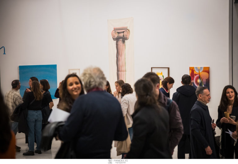 Άποψη από τον χώρο τέχνης ARCH στην Πλάκα, τη βραδιά των εγκαινίων της έκθεσης