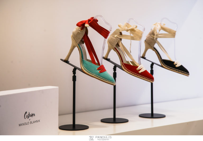 Πιστές φίλες του οίκου Castaner, παρουσιάστριες, ηθοποιοί, τραγουδίστριες, μοντέλα, stylists και όχι μόνο… είχαν την ευκαιρία να θαυμάσουν και να δοκιμάσουν τα μοδάτα σχέδια της SS18, τα οποία έχουν ως πηγή έμπνευσής τους την κομψότητα και τα ζωηρά χρώματα της Γαλλικής Προβηγκίας. Πρωταγωνίστρια της βραδιάς για μια ακόμα φορά το iconic σχέδιο Carina. Οι καλεσμένες είχαν την ευκαιρία να θαυμάσουν και τη capsule συλλογή που προέκυψε από την συνεργασία του οίκου με τον διάσημο σχεδιαστή Manolo Blahnik για τον εορτασμό των 90 χρόνων της Castaner. Ο συνδυασμός της πολυτελούς υπογραφής του Manolo Blahnik με την παραδοσιακή ισπανική αισθητική και την ανυπέρβλητη τεχνογνωσία για την κατασκευή espadrilles του οίκου, οδήγησαν σε ένα εξαιρετικό αποτέλεσμα. Espadrilles από καραβόπανο ή σατέν, σε έντονα χρώματα, με τακούνι ή χωρίς είναι τα iconic σχέδια που προτείνει ο σχεδιαστής.