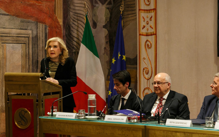 Στη Ρώμη η Πρέσβης Καλής Θελήσεως της UNESCO Μαριάννα Βαρδινογιάννη πραγματοποιήσε μια εξαιρετική ομιλία στην Ιταλική Γερουσία κατά τη διάρκεια της έναρξης των εργασιών του XIX High Level Meeting του Διεθνούς Οργανισμού Nizami Ganjavi International Center